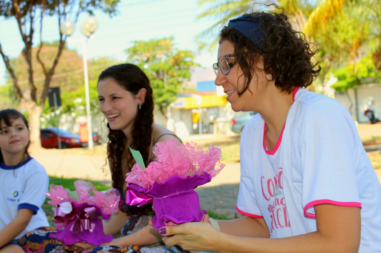A Lígia leu para as crianças um conto infantil que ela tem publicado em uma coletânea e eu contei a história do meu livro. No final, os alunos nos encheram de perguntas e ainda nos deram uma flor de presente com um recado super fofo! #amamos